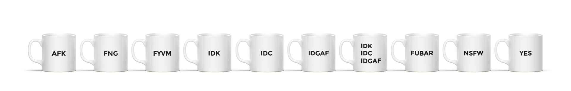 This hillarious coffee mug has the magic combo! The key to happiness at work. The three divine acronyms of corporate life. Use this mug as a magic item to dodge all those silly questions at the office.